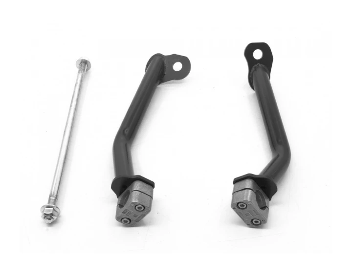 It has been documented that the OEM bars’ hard rubber pad can punch a hole in the cylinder header, which is why AltRider has produced a Reinforcement Bar to brace against impact and strengthen the entire crash bars structure. The Altrider design directs force in an almost straight line to the frame of the motorcycle, with no unnecessary bends or flimsy band clamps to bend under load.